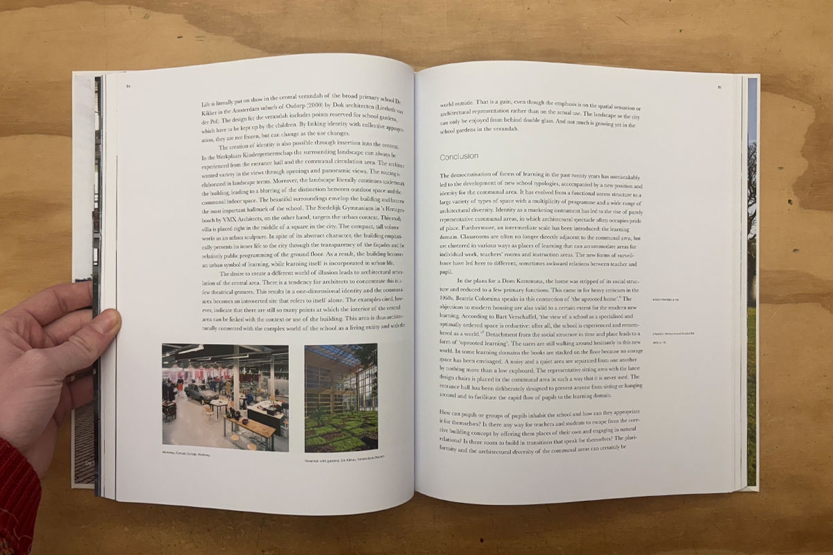 Architecture can contribute to stimulating learning environments, but architecture is more than an optimal translation of learning processes. The learning environment is also an environment that is used and experienced for a specific period of time. Architecture can create new spatial experiences for new generations that become part of the collective memory. It can thus rejoin tradition, which at this time is a tradition of change.