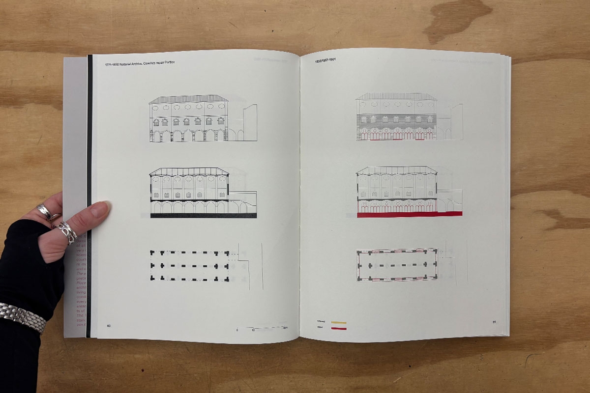 Architectural Affordances is a collection of drawings that trace transformations in thirty buildings over time. Organized into three categories based on time-periods and life cycles - centuries, over one hundred years, and less than a hundred years - the atlas gathers consistent floor plans, sections, and elevations that facilitate the study of Umbau as major and minor transformations of buildings alongside yellow-red plans.