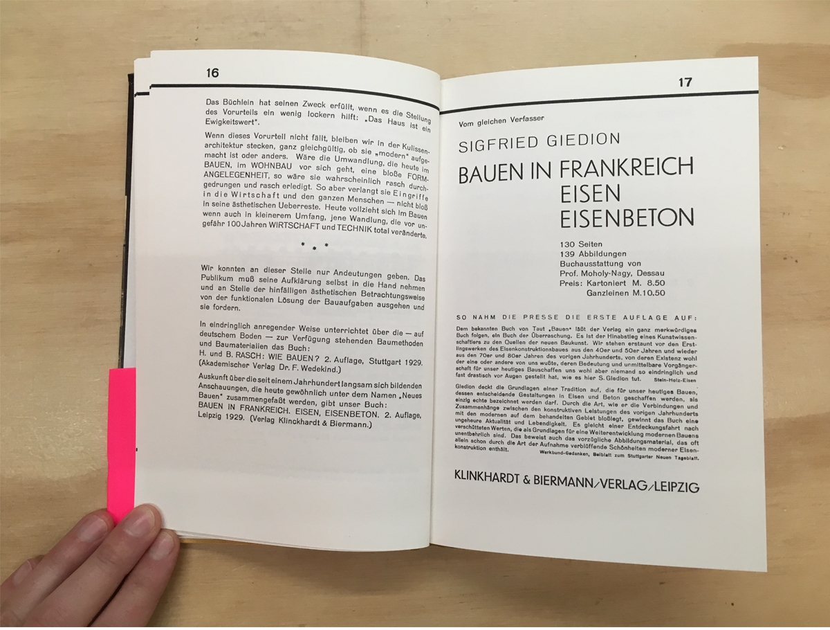 An important step in Giedion’s rise as one of the foremost propagators of modern architecture, this manifesto is based on the argumentative power of visual comparisons, and the only book the art historian both authored and designed.
