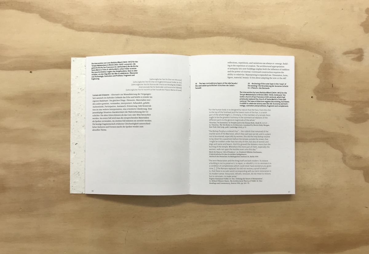New approaches in architecture reveal a trend towards concepts of the frequently used but theoretically and historically rarely defined term upcycling. In that context, one often forgets that the history of building has also always been a history of, firstly, recycled and upcycled building materials and components, and secondly, of building knowledge and building styles. Comprehending buildings as a part of a social change process poses a challenge to our current habits and modern concept of unambiguity, seclusion and authorship of architecture.