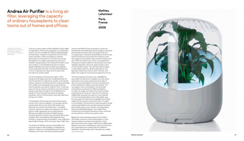 Projects nominated by an international collection of designers, curators, critics and thinkers were selected to create the best possible sourcebook of the most exciting and original green designs at all scales, from eyeglasses to landscapes and from motorcycles to skyscrapers. The result is an inspirational survey of the enormous amount of innovative work being done in this field, as well as a directory of products, ideas and techniques for both designers and consumers.