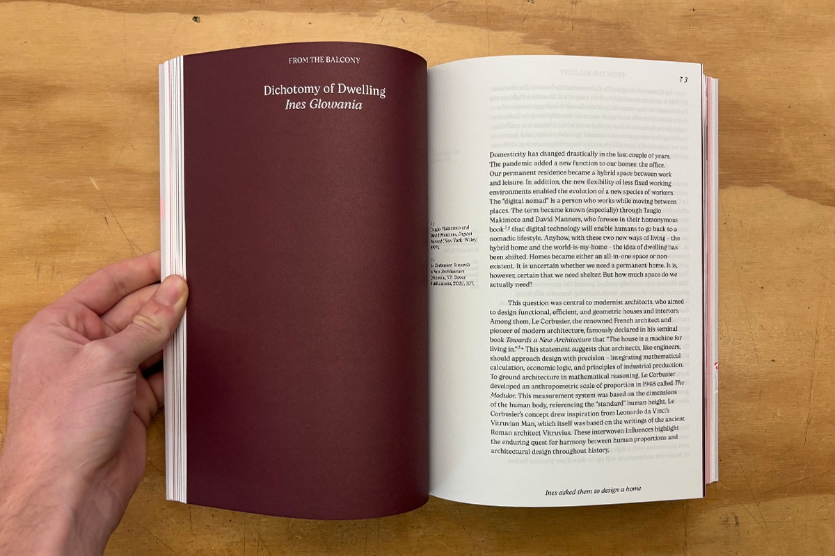 This collaborative exploration invites us to pause and reconsider what truly shapes the spaces we inhabit. Rooted in the belief that domesticity is not a static setting for everyday life but a living and evolving experience, the book expands from the scope of the architectural lens. By reintroducing home as something felt, remembered, imagined, and continuously made, this publication tackles the issues of dwelling, belonging and shared living with architects, interior architects, educators, designers, and practitioners whose work touches on care, intimacy, and everyday rituals.