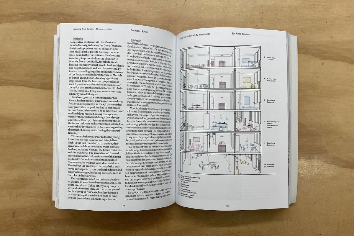 Voor het vergroten van de bekendheid en de vraag naar coöperatief wonen zijn goede voorbeelden onmisbaar. De architectuur van wooncoöperaties legt succesvolle voorbeelden uit Duitsland, waar deze woonvorm een lange traditie kent, naast recentere Nederlandse projecten. Het boek toont hoe wooncoöperaties in beide landen tot stand komen, worden beheerd en hoe ze op lange termijn worden ervaren door bewoners.