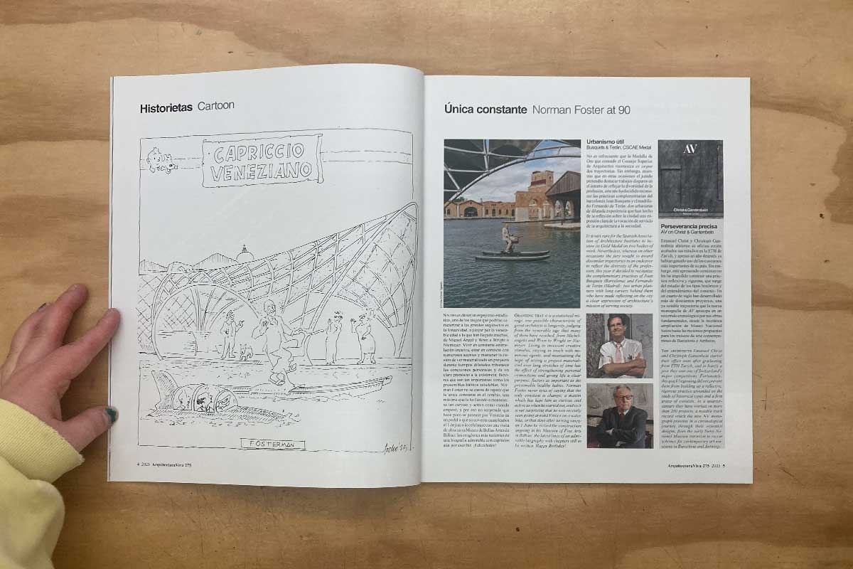 In the Art and Culture section, Oscar Tusquets reflects on a design problem that dates back to Greek temples, and Juan Miró Sardá recounts the collaboration between Fernando Higueras and Antonio Miró using their shared interest in circular compositions as guiding thread. The usual News and Books pages are complemented with an essay where Luis Fernández-Galiano conjures up the figure of Léon Krier in the wake of his demise.