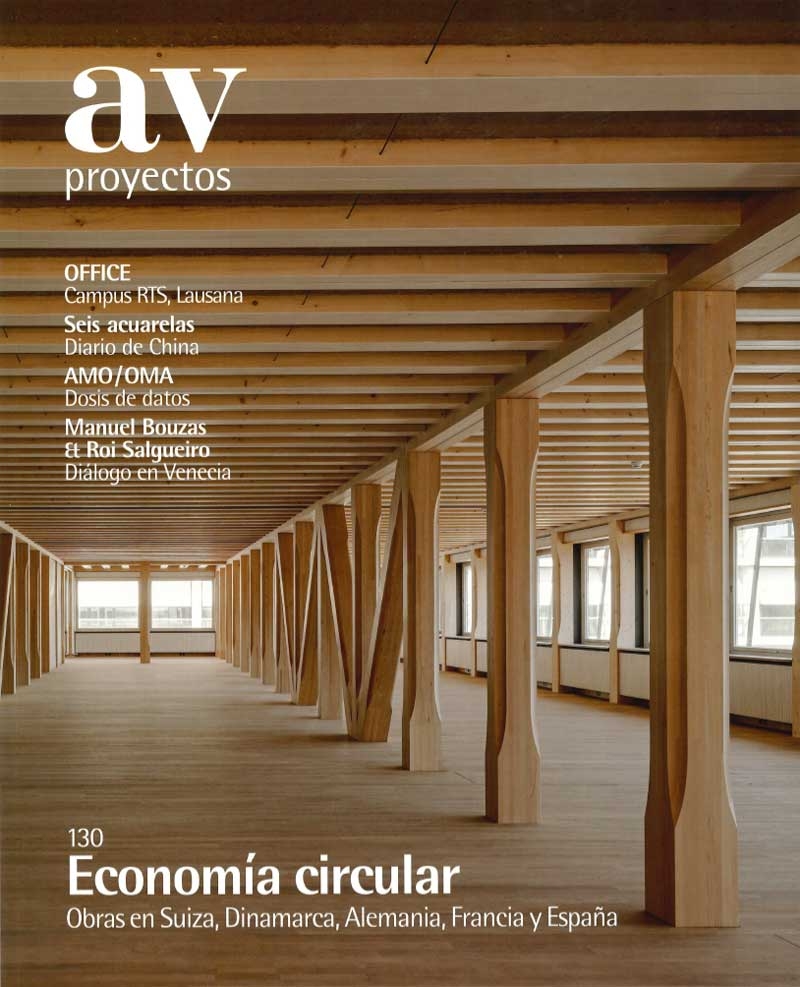 AV Proyectos 130 focuses on circular economy, a current topic addressed with works by Herzog & de Meuron, BeAr, and Harquitectes, among other offices, and with an essay by architect Mireia Luzárraga, from the studio TAKK.