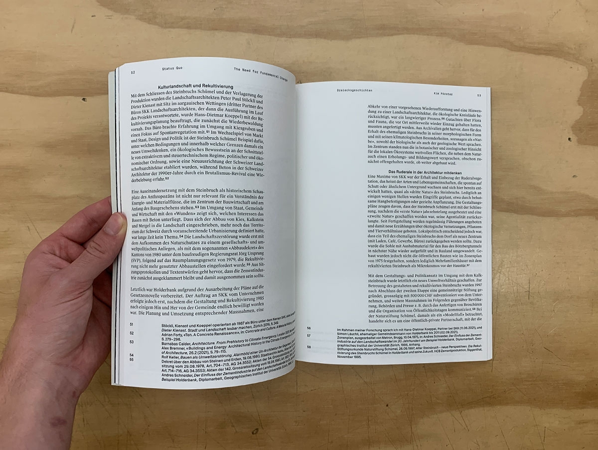 Beyond Concrete. Strategies for a post-fossil Baukultur combines contributions from the symposium “Constructive Futures – Beyond Concrete”, which marked the start of the academic year 2021/2022 at the School of Architecture of University of Applied Sciences and Arts Northwestern Switzerland FHNW. This academic year is special, as all bachelor’s and master’s degree programs must withstand the unreflective fallback on supposedly proven construction methods in order to explore constructive and future-oriented solutions beyond our professional comfort zones. The symposium provided an opportunity to reflect on where the construction and planning industry currently stands and why a fundamental change seems inevitable to us.