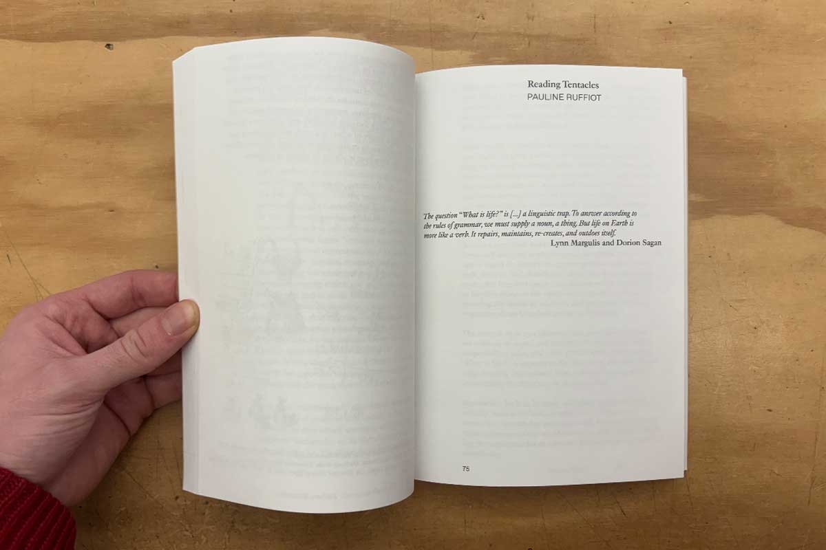 This second volume of ‘Compost Reader’ continues to espouse its vision of the world as an interconnected being, where all parts relate to one another. The act of composting becomes our new relational ontology. Composting is seen as a way of cultivating consciousness through questions instead of answers, and from uncertainty and doubt. Hydro-memories, a talking lion, sounds that live in a snail shell, a dry swamp, a herbal medicine witch girl, ephemeral queer performances, chemical-sensing tentacles, stone eaters, scriptures-fossil, dolphins in traffic, blue humanities, and digital forensic public spaces are just some of the matters fermenting in this book.
