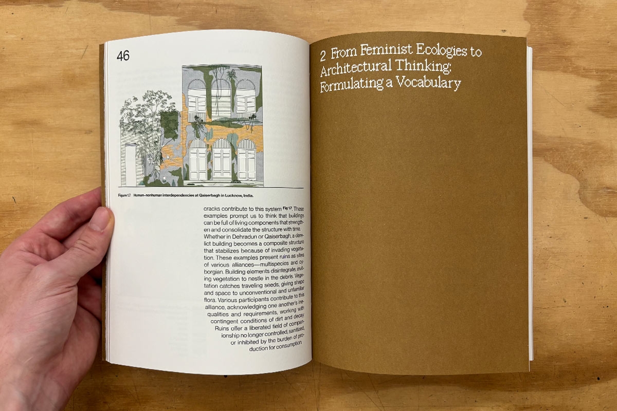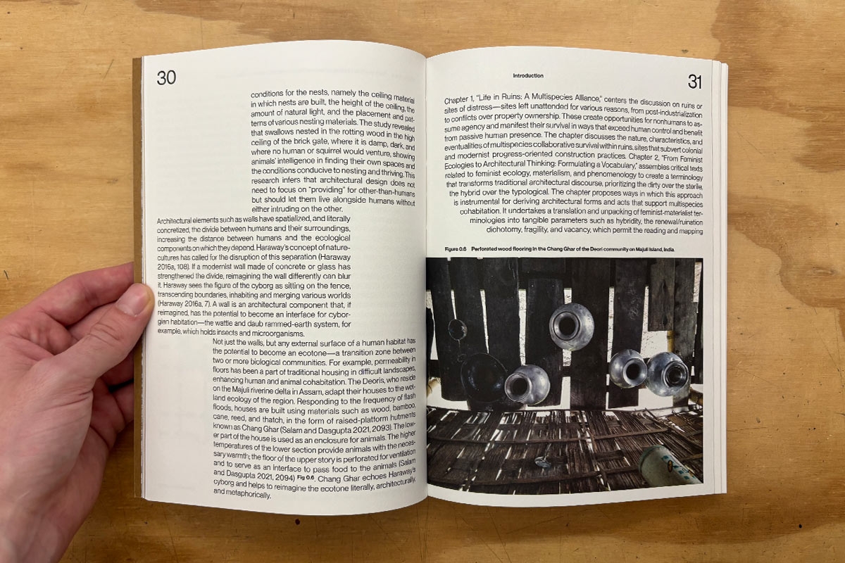 Living Together positions itself in that fragmentation. The book is an inquiry into an architecture which allows multispecies alliances to take place. It brings materialist and ecological inquiries to architectural design, practice, and thinking; acknowledging a necessity to go beyond established architectural ideals of progress, monumentality, longevity, and permanence.