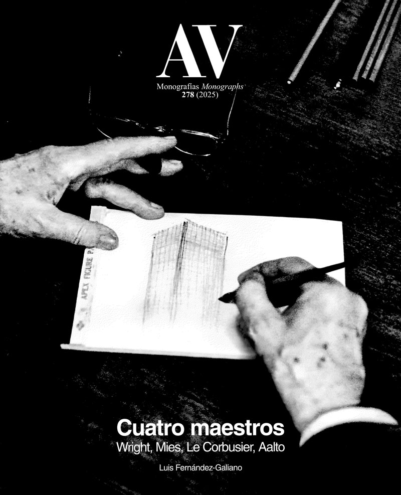 There’s no master without myth, so it is no surprise that the four most prominent modern architects, the most widely studied at schools, had novel-like lives: moments of genius, crises, stimulating friendships, great women by their sides… Luis Fernández-Galiano discusses all this in the new issue of AV Monographs, which examines the biographies of Frank Lloyd Wright, Mies van der Rohe, Le Corbusier, and Alvar Aalto. These life journeys originated in a series of lectures delivered in 2010 at the Fundación Juan March in Madrid, which had a great turnout and have continued to draw considerable attention ever since, thanks to streaming. As with ‘Four Cities’ (AV 259), this success with audiences has encouraged to document the talks in print, maintaining the natural pace and graphic profuseness of slide presentations.