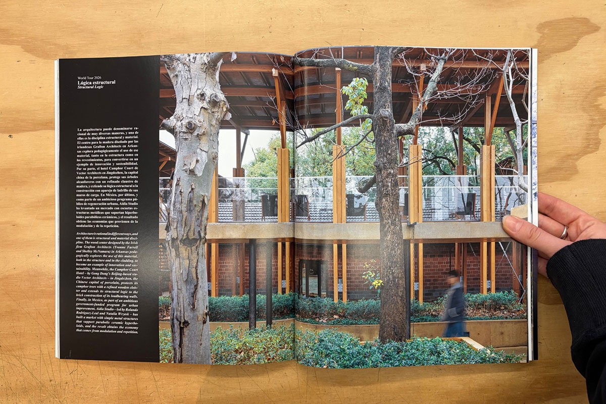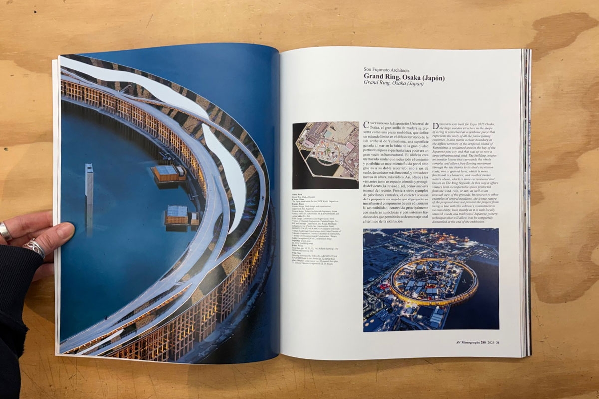 For the past three years, the Spain Yearbook has been complemented by a special edition of AV Monographs that is an invitation to travel the world through twelve foreign works presented by Luis Fernández-Galiano, who reflects on the uncertain contemporary landscape. The year has been marked by Donald Trump’s prominence, but there have been other relevant issues on the international level, such as the unstoppable rise of China and the conflicts in Gaza and Ukraine, and on the national one, with the massive blackout and the summer fires.