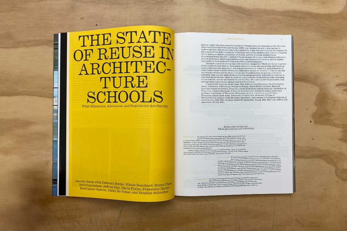 The theme of the issue nods to the ubiquitous slogan, “reduce, reuse, recycle,” from the United States’ first national recycling programs in the 1970s. Although it originated from a grassroots movement to address mounting waste in post-war American cities, the slogan also had the effect of shifting that responsibility onto consumers, rather than the producers of throw-away packaging. Fifty years later, our theme—“Reuse and Repair”—channels some of the same urgency but focuses it through a more critical lens on the built environment’s complex technical, cultural, and political dimensions. Offering “Reuse and Repair” as a pair of concepts to encourage thinking around how systemic change might be enacted, we aim to open a conversation about how designing toward a low-carbon future can go hand-in-hand with the wider work of caring for and remaking our cities and society.