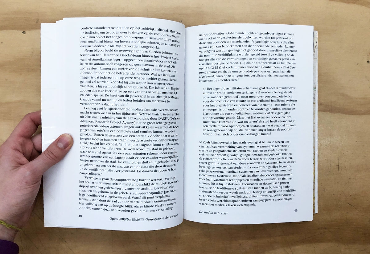 Amsterdam in oorlog in 2030. Deze vervaarlijke projectie naar de toekomst vindt plaats om het denken over onderwerpen als tolerantie, angst, veiligheid en controle, censuur, publieke ruimte en urbane politiek aan te scherpen en uit te breiden. Er worden geen vijanden benoemd of antwoorden gegeven, maar vragen afgevuurd en experimentele scenario’s geschetst door theoretici en kunstenaars. Amsterdam is hierbij zowel een concrete case als een strange attractor.