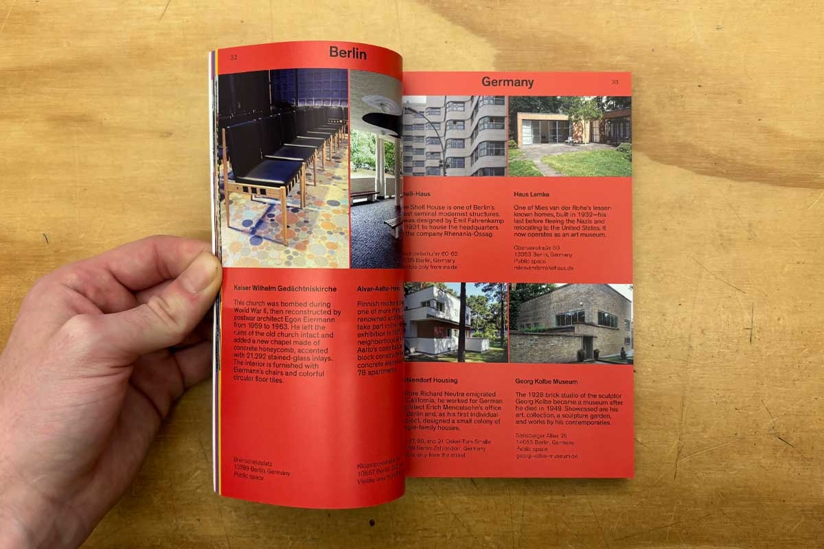 The Modernist Travel Guide is a pocket-sized reference book written and photographed by Adam Štěch, featuring nearly 400 of his favorite examples of modernist architecture in 30 major cities around the world.