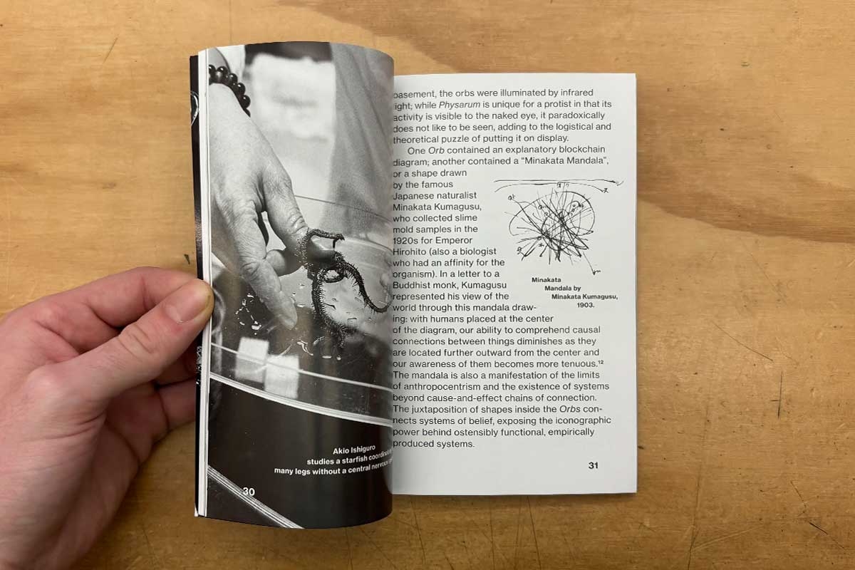 The publication 'Orgs. From Slime Mold to Silicon Valley and Beyond' is an experimental survey of decentralised organisms and organisations. It expands upon work that artist Jenna Sutela has been producing over the past couple of years, layering organisational and spiritual charts, or mazes, and the navigational intelligence of Physarum polycephalum, the single-celled yet “many-headed” slime mold.