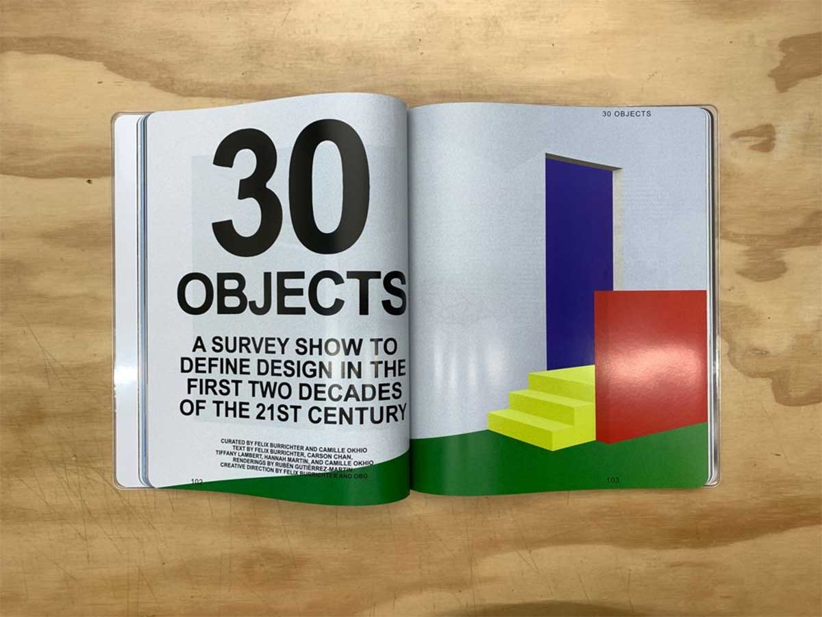 A survey to define design in the first two decades of the 21st century, curated by Felix Burrichter and Camille Okhio, with texts by Carson Chan, Tiffany Lambert, Hannah Martin, Camille Okhio, and Felix Burrichter.