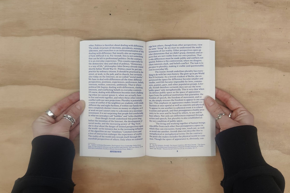 In the book 'Space is Politics', architect and urban planner Hans Teerds demonstrates that space is not merely a prerequisite for political activity; it is political in itself. Drawing on Hannah Arendt’s political theory, Teerds argues that architecture should be recognised as a social practice that shapes and influences who meets, who participates and who is excluded.