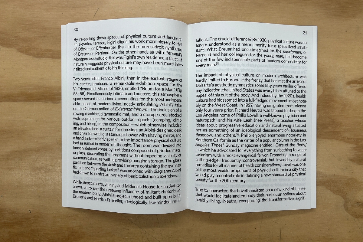 The book 'The Advanced School of Collective Feeling' explores the advent of radical new conceptions of the body—a phenomenon known in the 1920s and ’30s as “physical culture” - and their impact on the thinking of some of modern architecture’s most influential figures. Using archival photographs, diagrams, and plans, the book reconstructs a constellation of provocative domestic projects by Marcel Breuer, Charlotte Perriand, Richard Neutra, and others. This obscure chapter in the modern movement gestures towards a remarkable synthesis of the individual and the collective, a perspective that holds enormous potential for articulating an architecture of today.