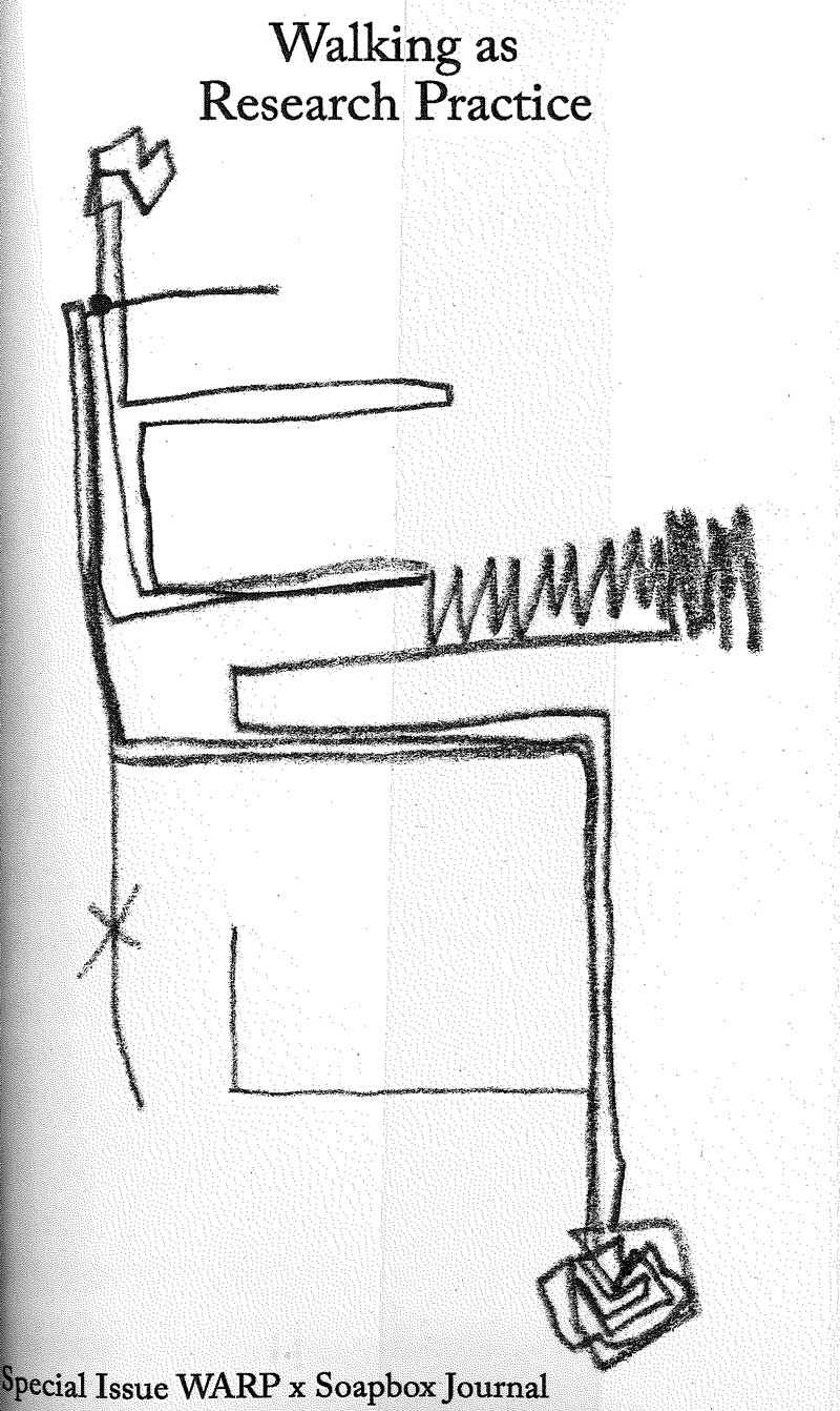 What might be considered the research output of a walking practice? An important caveat to this would be to ask where and when the research occurs in relation to the walk, the walking, and the walkers. Does the walk activate our senses, or do our senses demand that we walk?